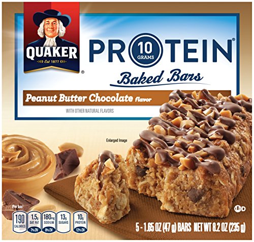 - Product Name: Quaker Baked Protein Bars, Peanut Butter Chocolate, Breakfast Bars, 5 Bars Per Box (Pack of 8 Boxes) Net Wt 8.2 Oz